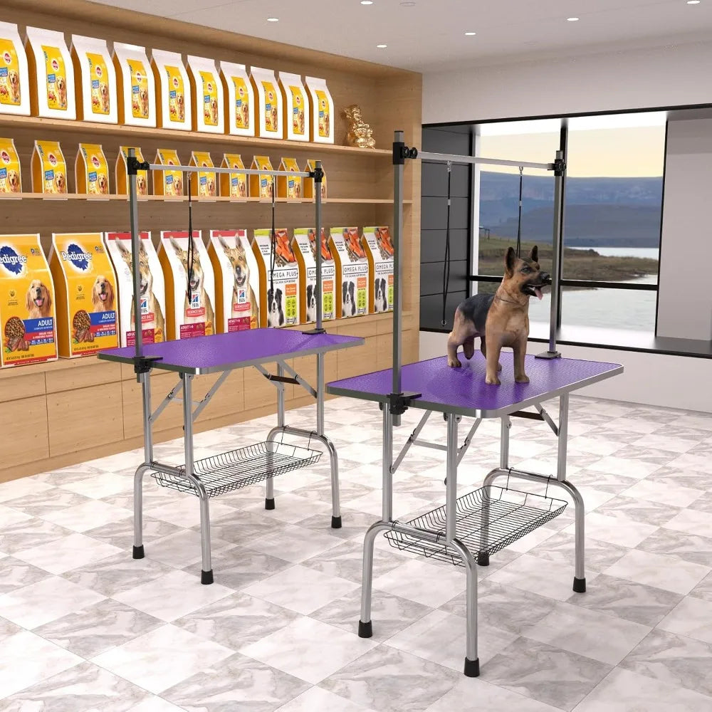 42" Dog Grooming Table Foldable Pet Grooming Tables with Adjustable Arm Noose Storage Mesh Tray Maximum Capacity Up to 330lbs