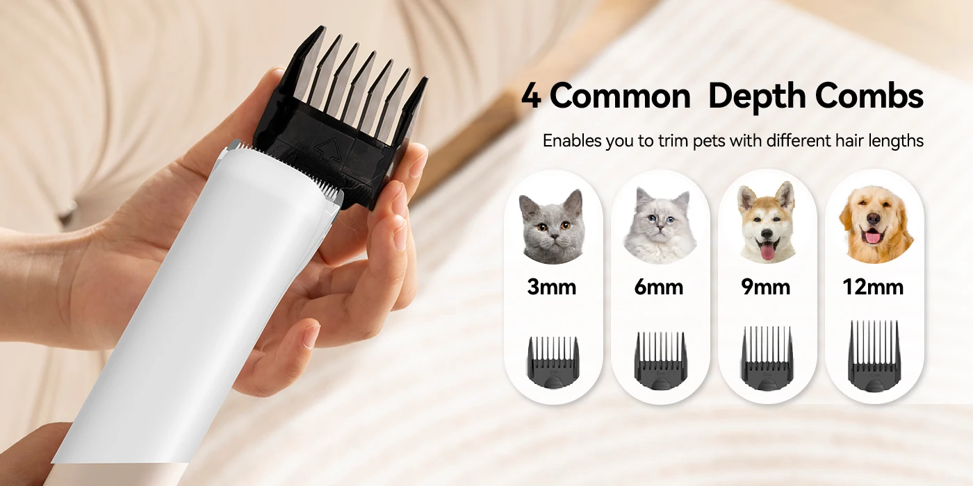 4 different tooth spacing (3/6/9/12mm): more precise hair length regulation than conventional grooming devices