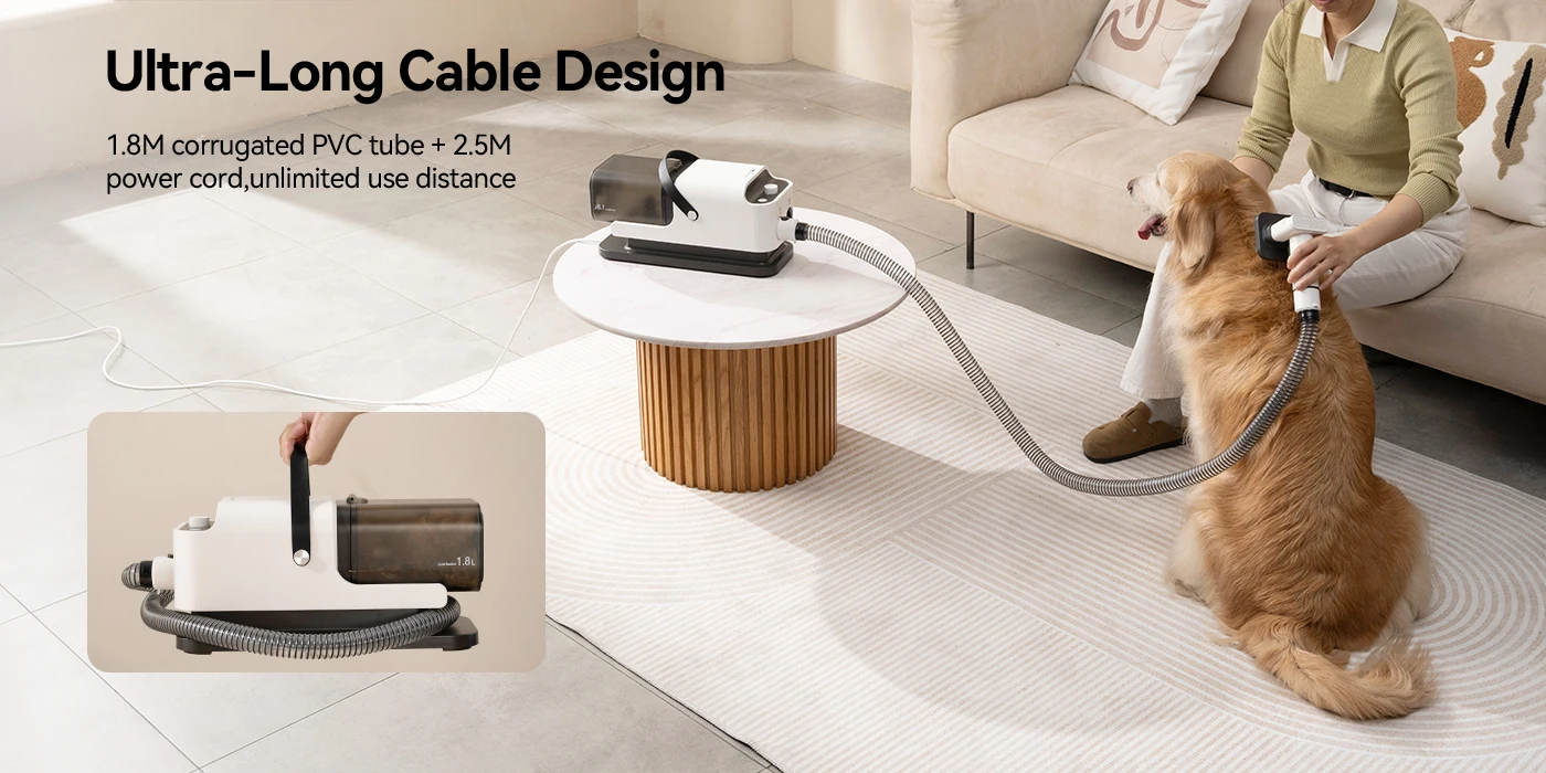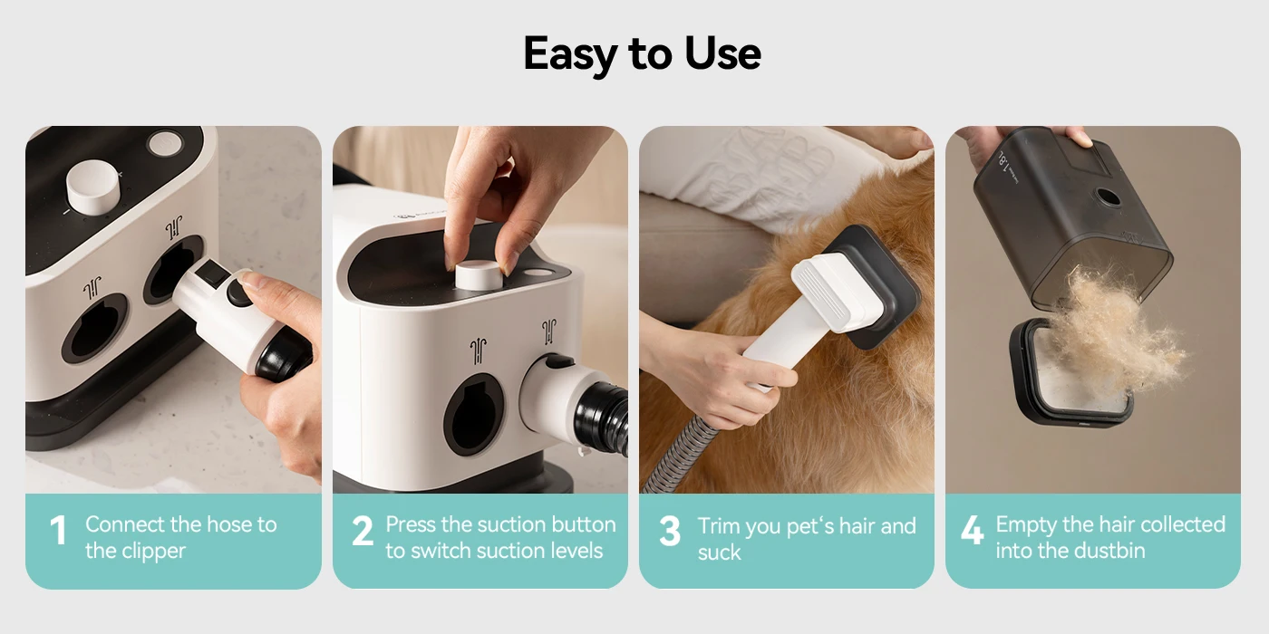 Simultaneous functions: blow-drying, cutting and sucking-ideal for professional groomers and demanding pet care