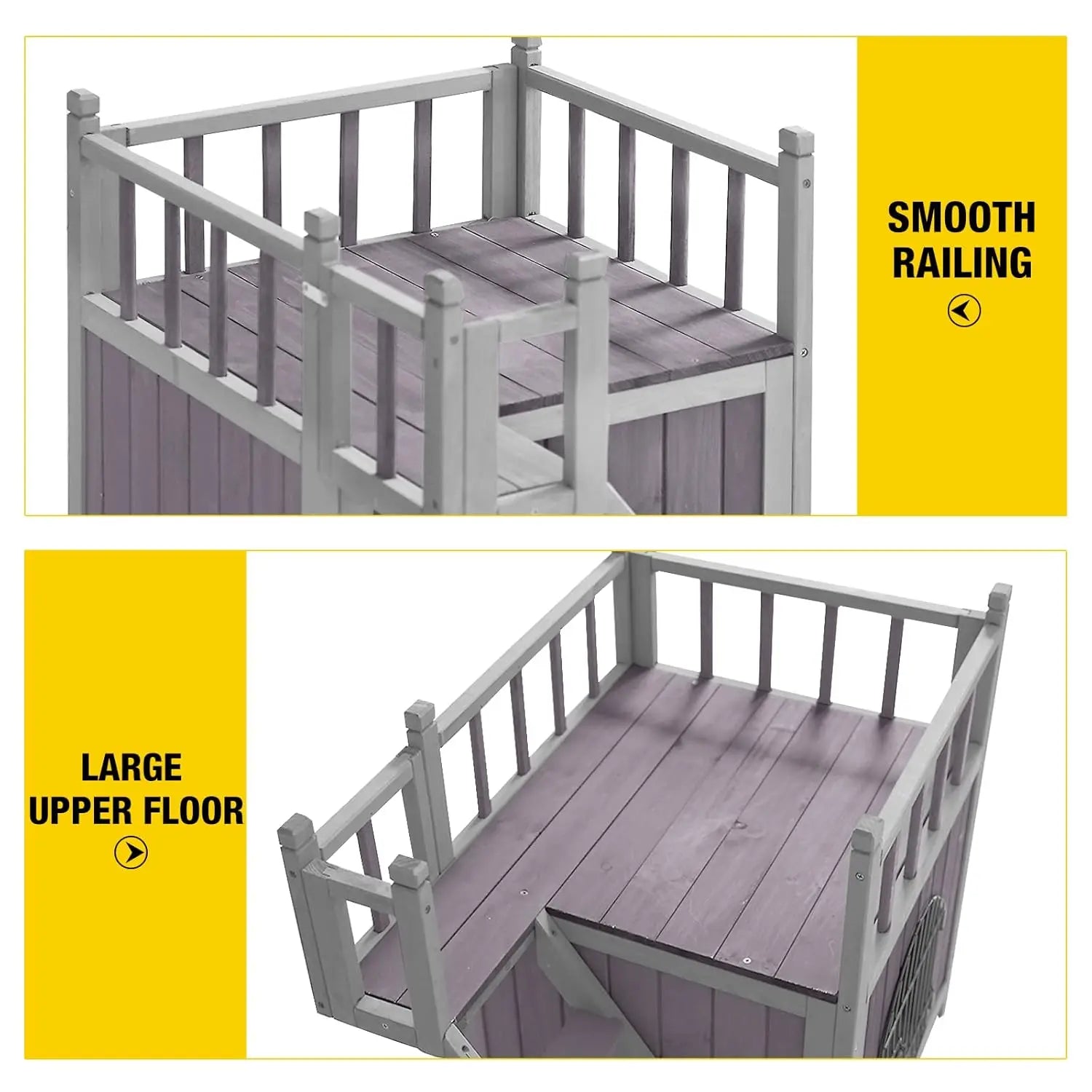 The pet house designed with balcony,rest room and side stairs, provide comfortable playing and sleeping room.